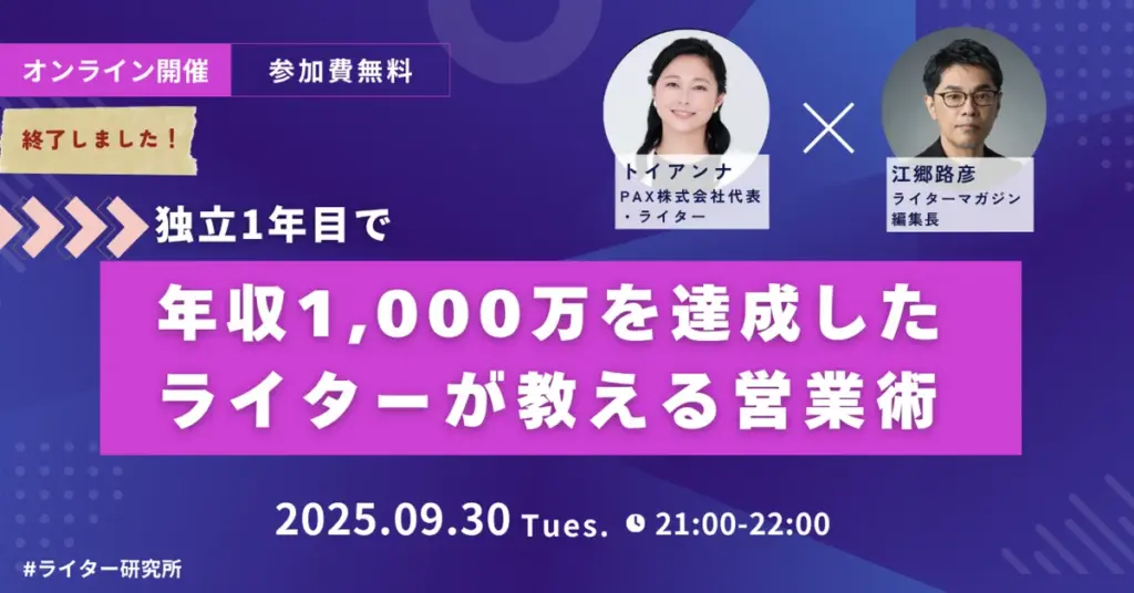 9月30日(火)「ライターの営業術」をテーマにイベントを開催しました。